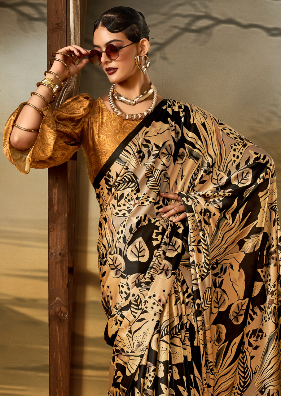 Crepe Beige Printed Designer Saree With Blouse Piece (SATIN82)